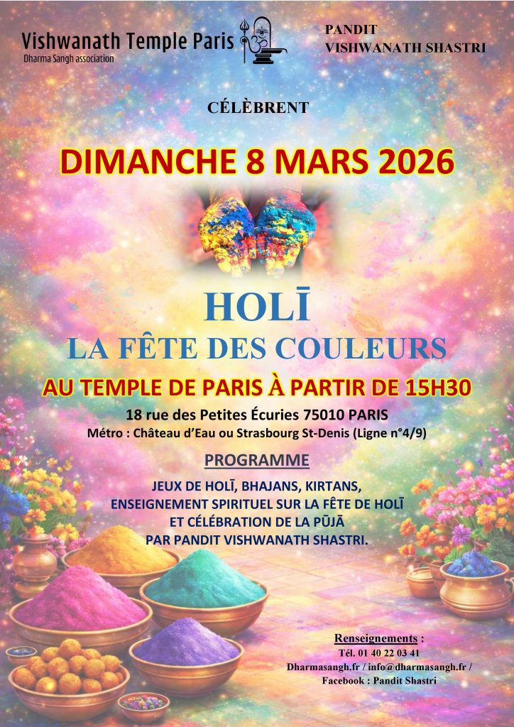 Holī, la fête des couleurs, célèbre le passage de la fin de l’hiver et du début du printemps qui a lieu au le jour de la pleine lune du mois indien de Phālguna (février-mars). C’est avant tout la fête du printemps, du renouveau et de l’amour.