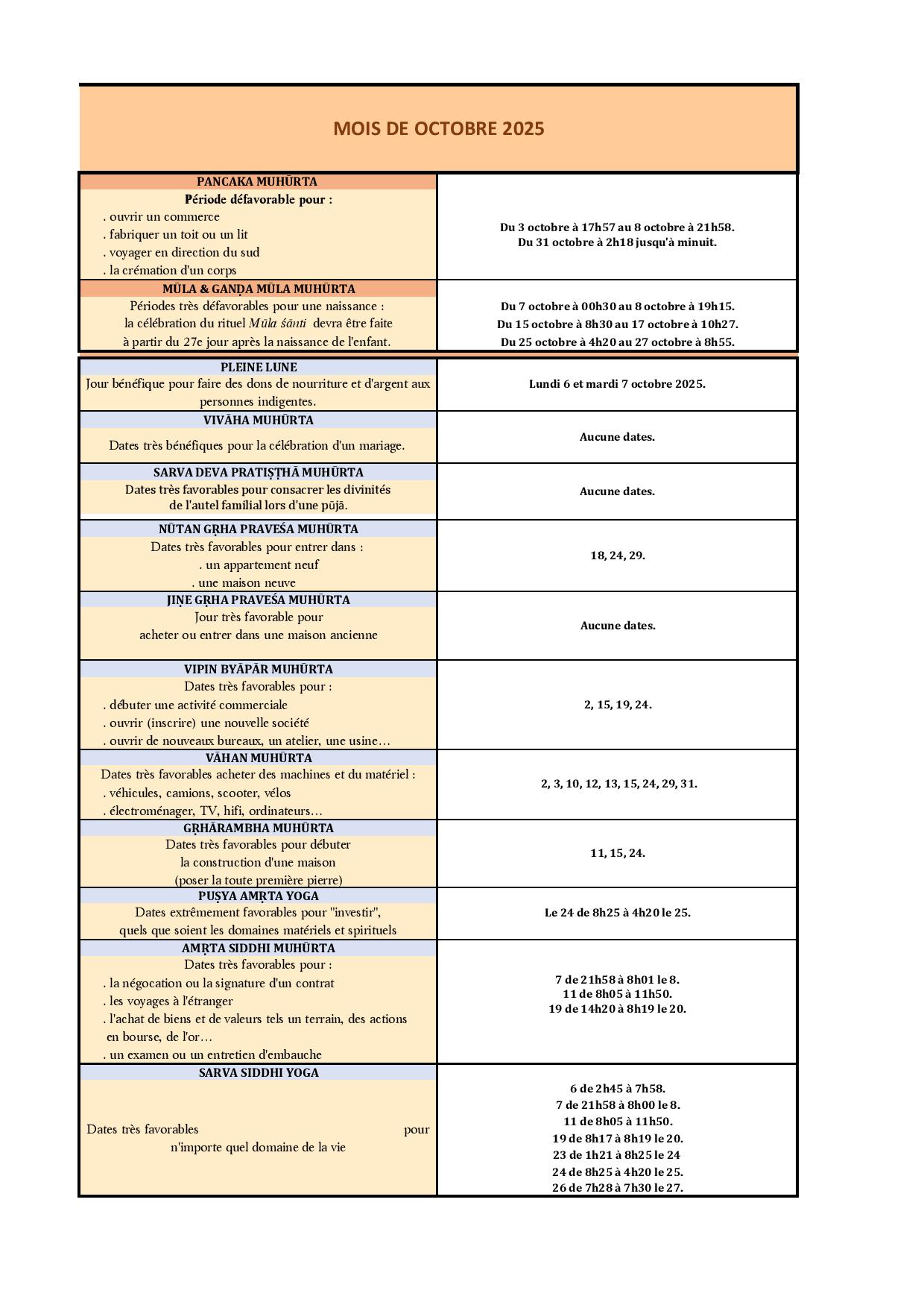MUHŪRTA – OCTOBRE 2025