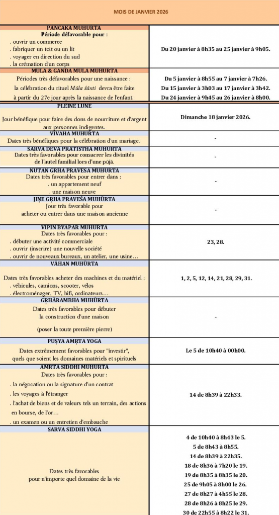 MUHŪRTA – JANVIER 2026